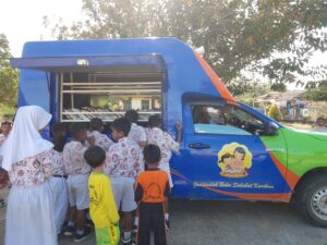 Layanan perpustakaan keliling ini juga disambut baik oleh para pelajar dan guru.